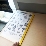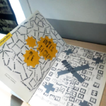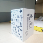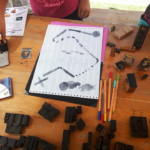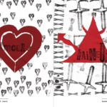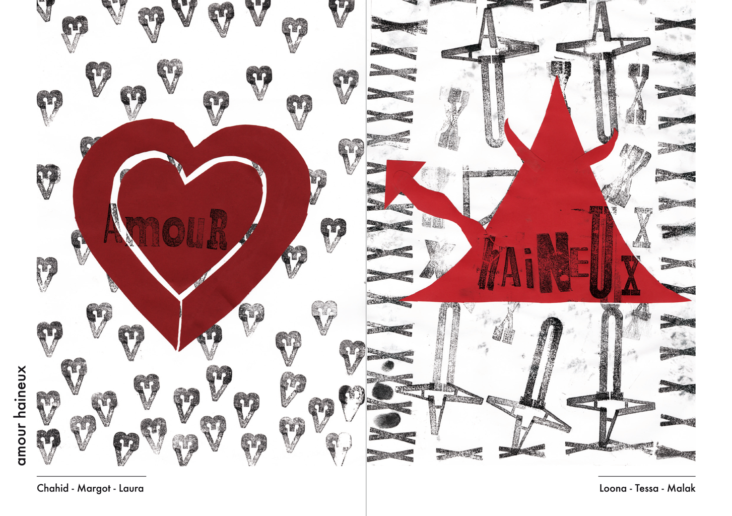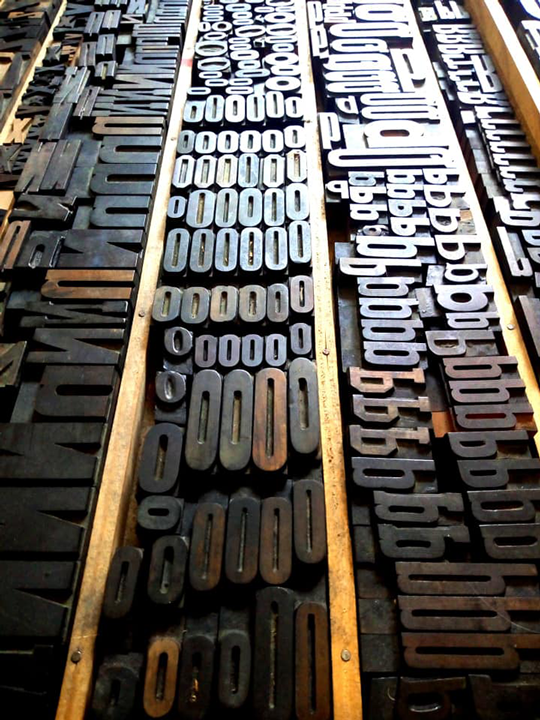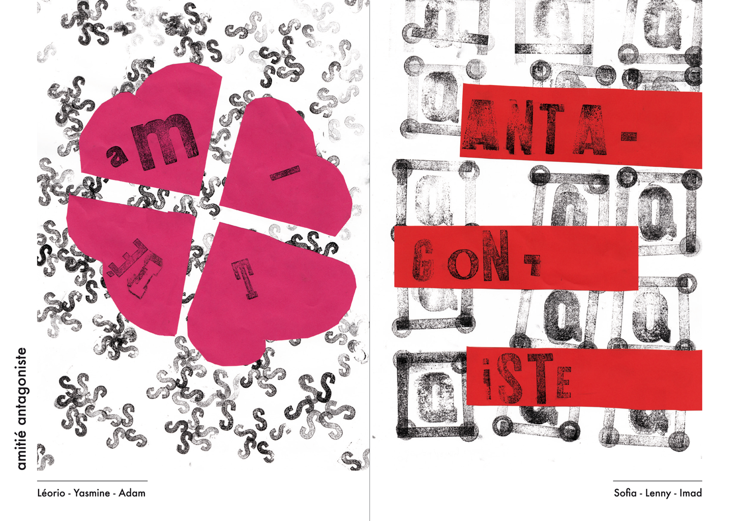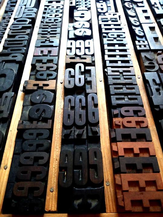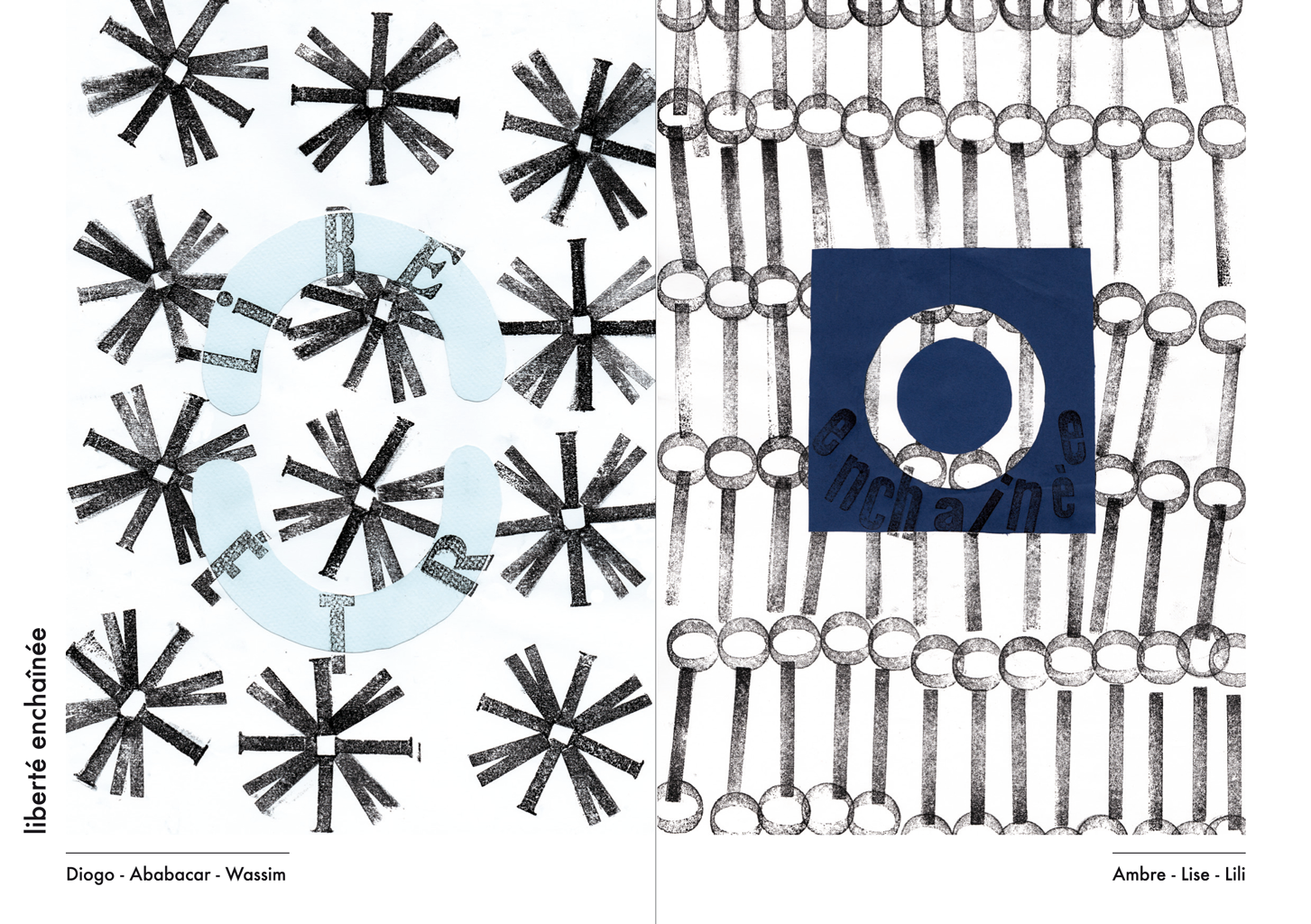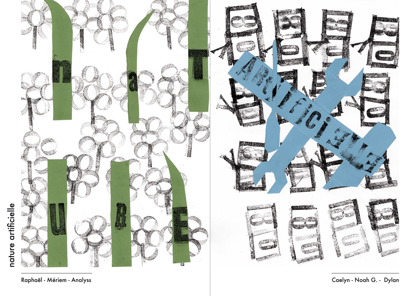 Permet d’initier l’expérimentation graphique sans complexe par : Le tamponnage à l’aide de caractères bois d’imprimerie ou de tampons réalisés par mes soins, des pochoirs, des caractères transferts, des papiers, feutres et autres crayons, une machine à écrire… Jusqu’à, parfois, l’utilisation de pâte à modeler, de briques de construction, de gommettes… Toutes techniques qui puissent engendrer l’acte créatif libre.