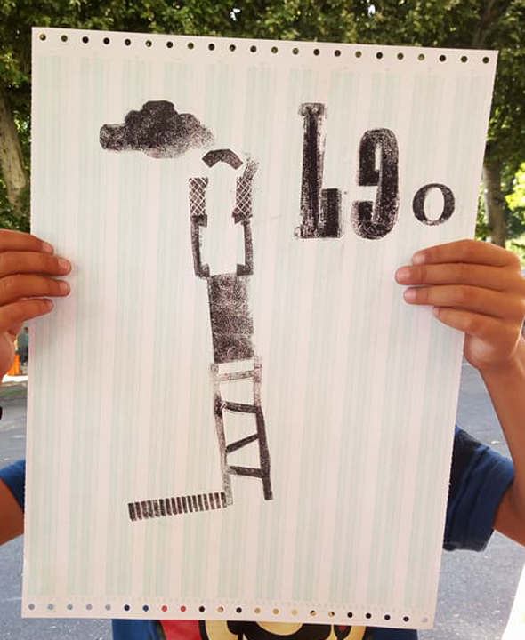 JE CONÇOIS ET ANIME DES ATELIERS GRAPHIQUES, parfois lors d’événements, essentiellement en milieu scolaire ou culturel. Auprès d’enfants jusqu’aux seniors, avec toujours l’envie de : libérer l’expression, décomplexer l’acte créatif, faire rire, réfléchir, faire vivre l’esprit grâce au travail de la main !